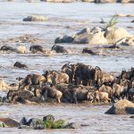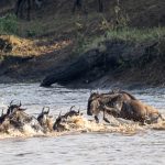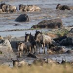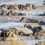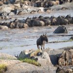 As an European who never witnessed this before, it was astonishing to just drive around the northern Serengeti this time of year. There is no escaping Wildebeest, they are everywhere, normally in loose herds, spread out. But then the pressure builds up and they need to “go on” towards their next destination and this means crossing a river.